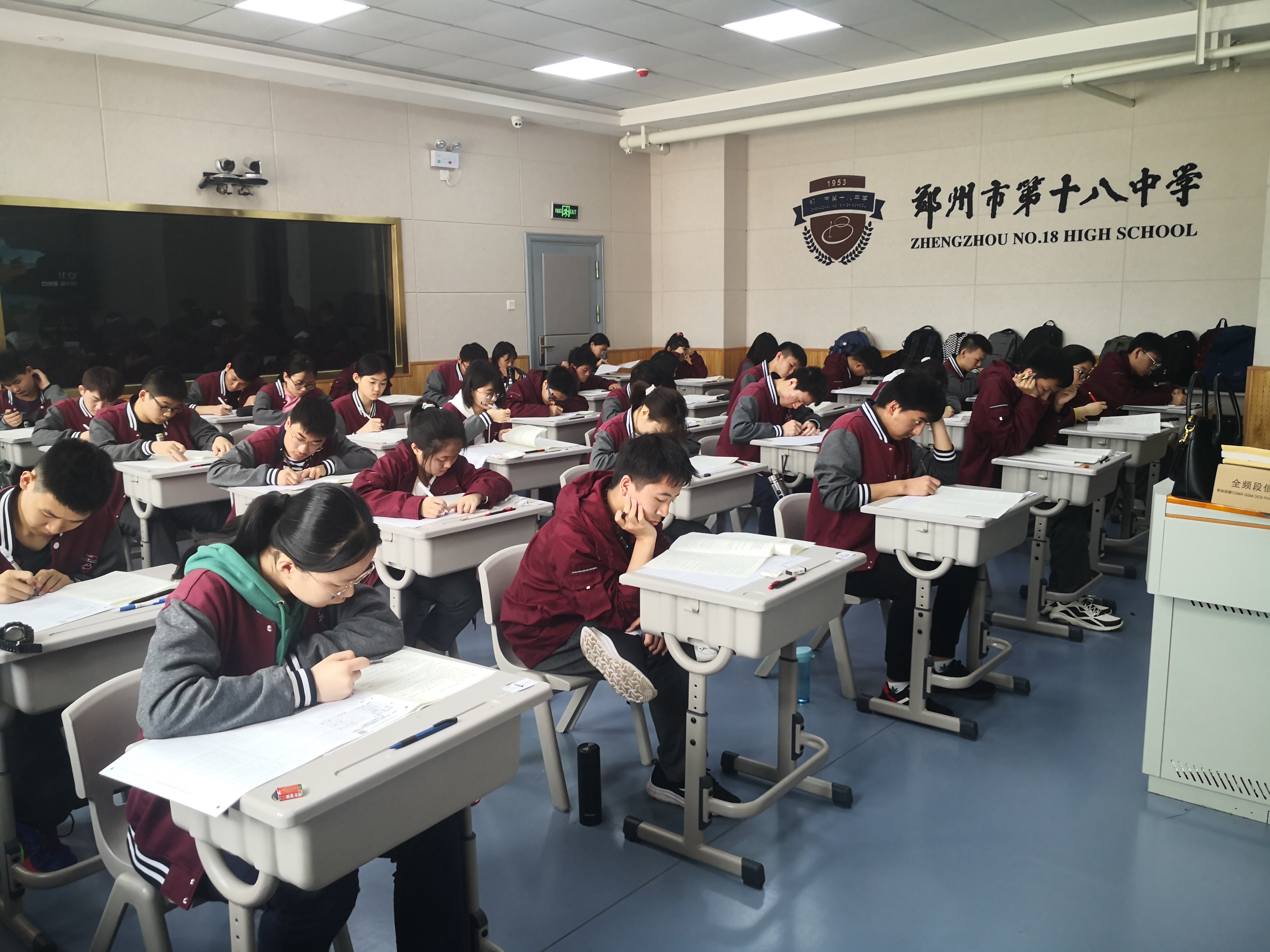 考试中的郑州18学子认真答题