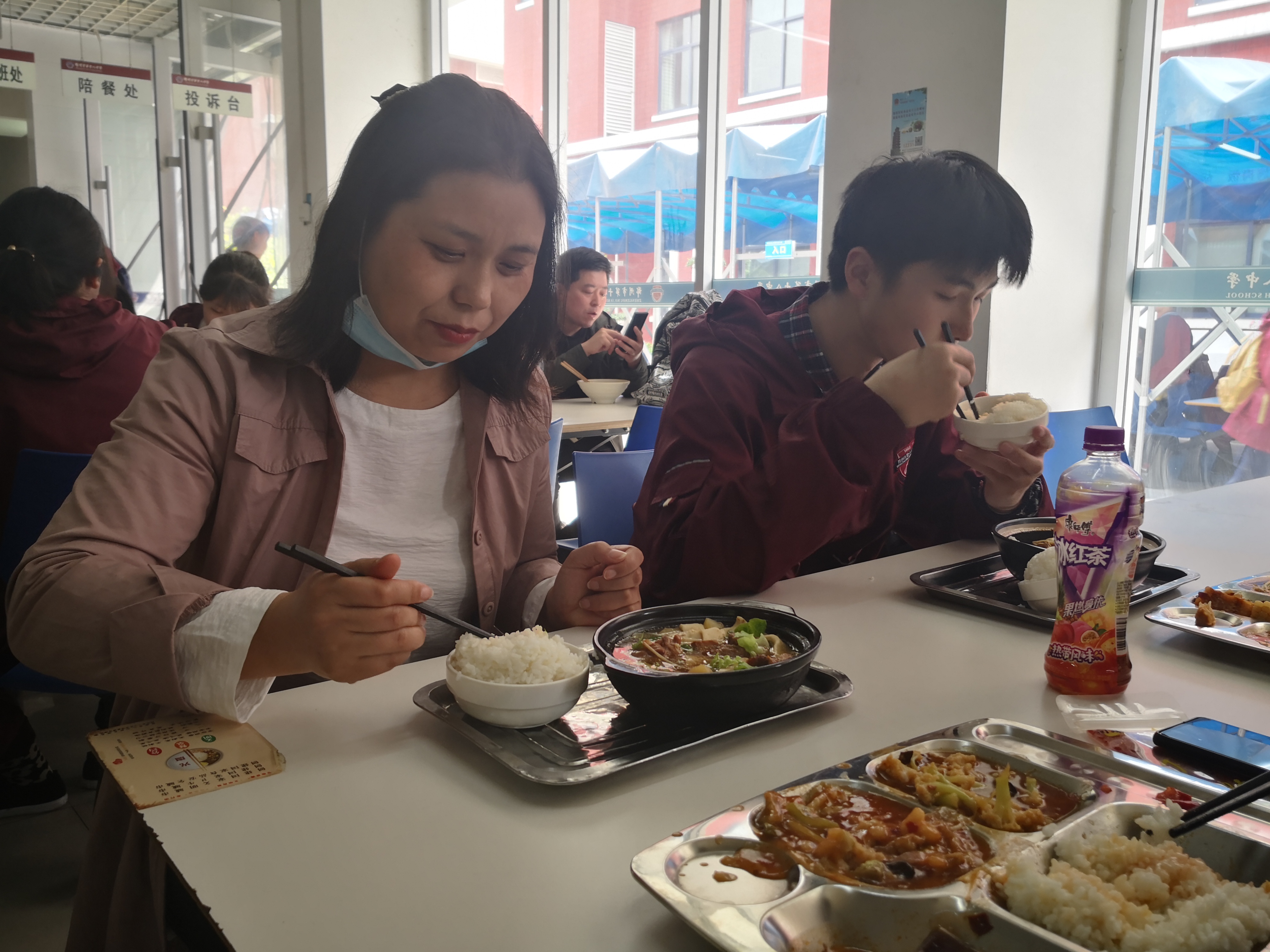 监考结束后与孩子共进午餐