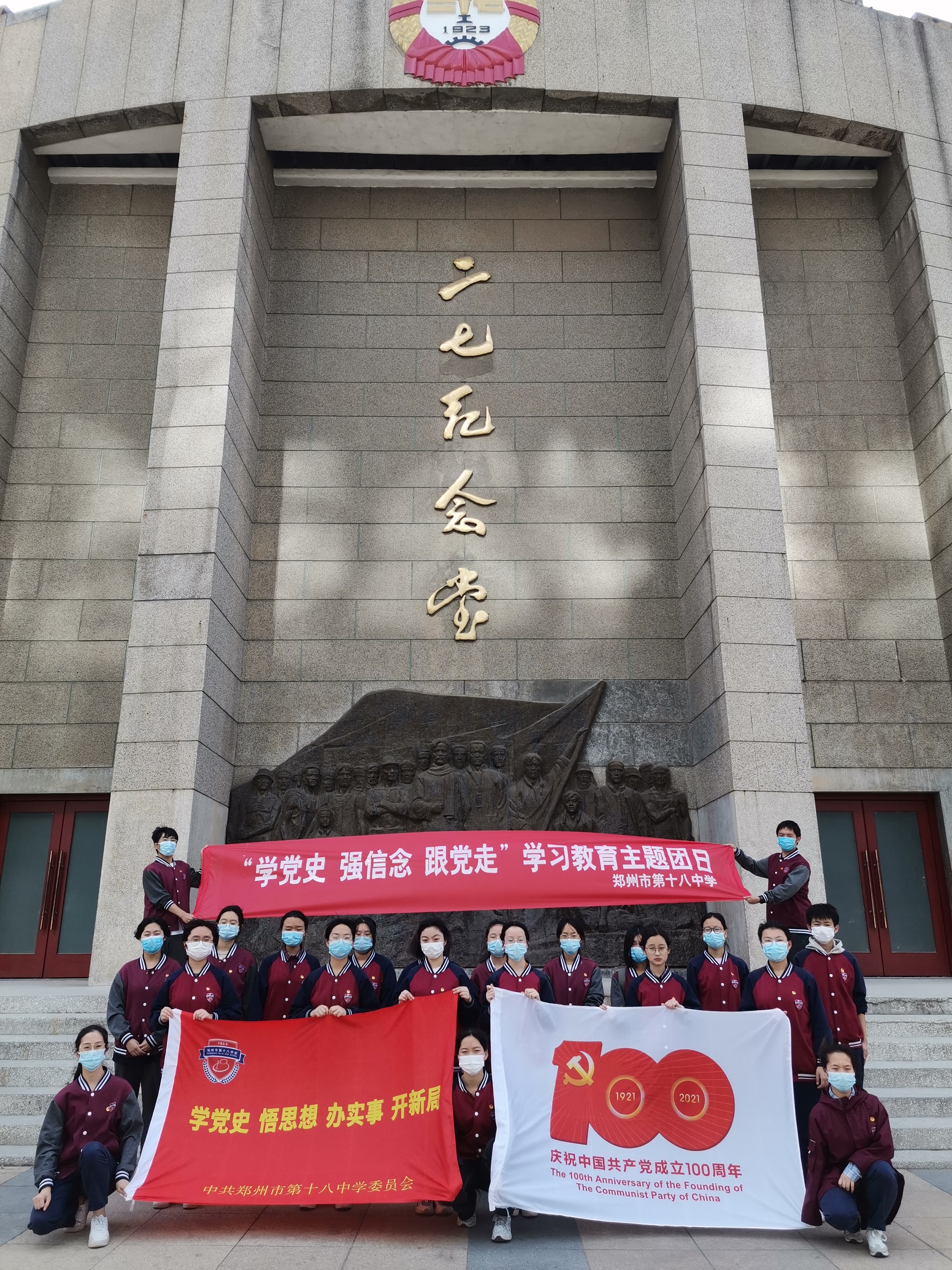 为庆祝中国共产党建党100周年,5月5日下午,郑州18中团学干部和部分入团积极分子在学校团委书记李晓的带领下,走进郑州二七纪念馆、郑州二七纪念堂,开展“学党史、强信念、跟党走”主题教育,寻访红色足迹、传承革命薪火。