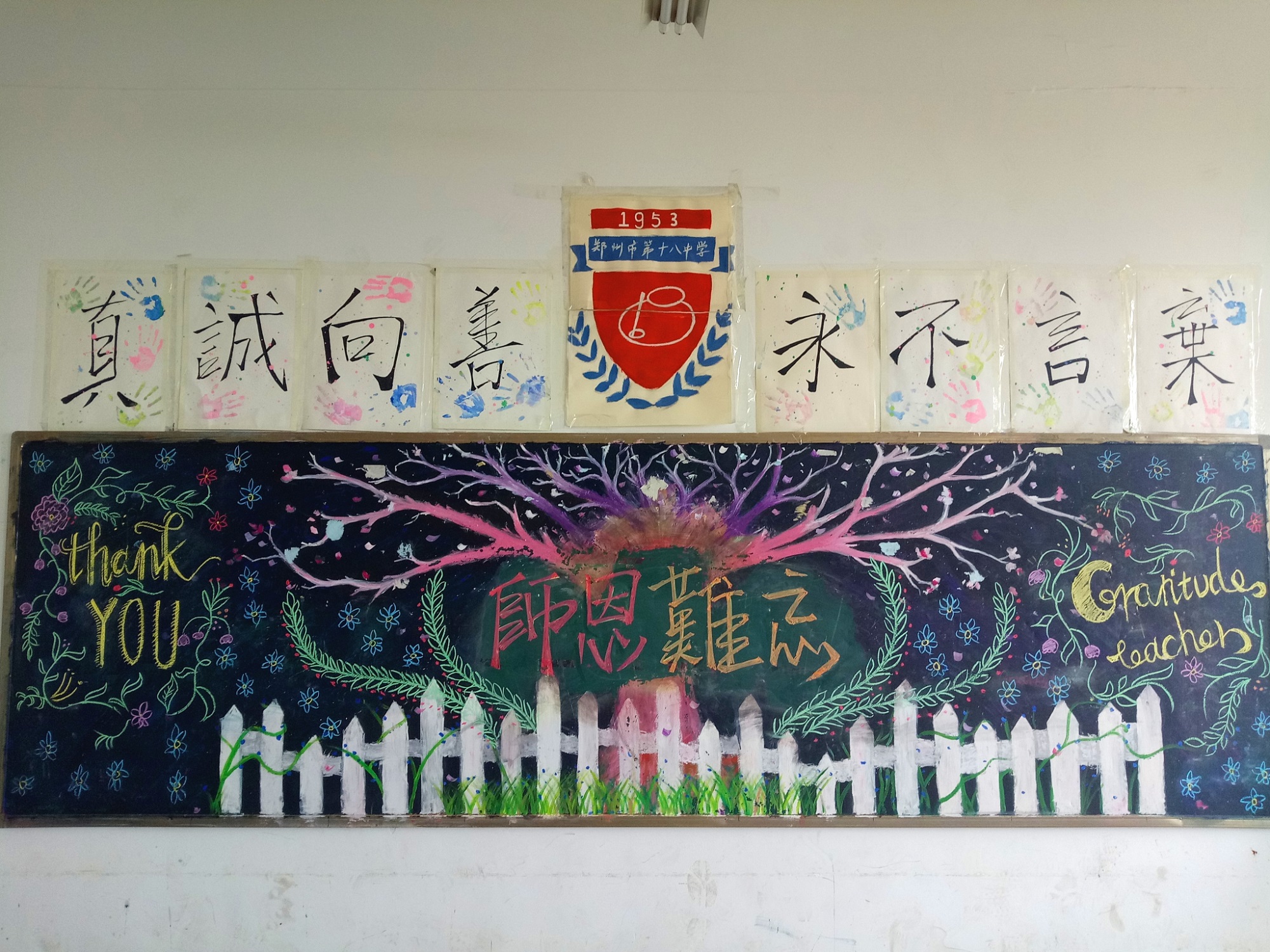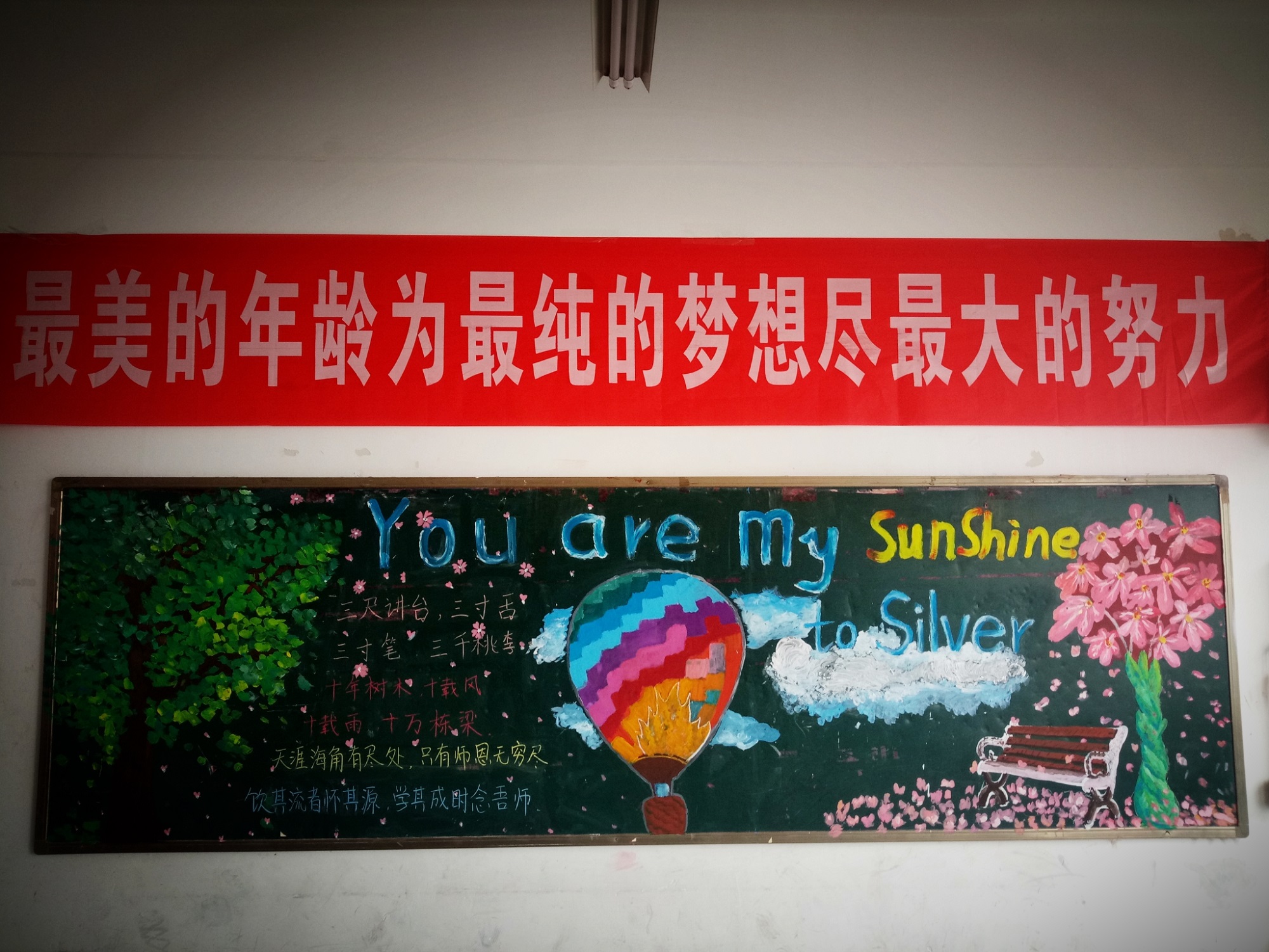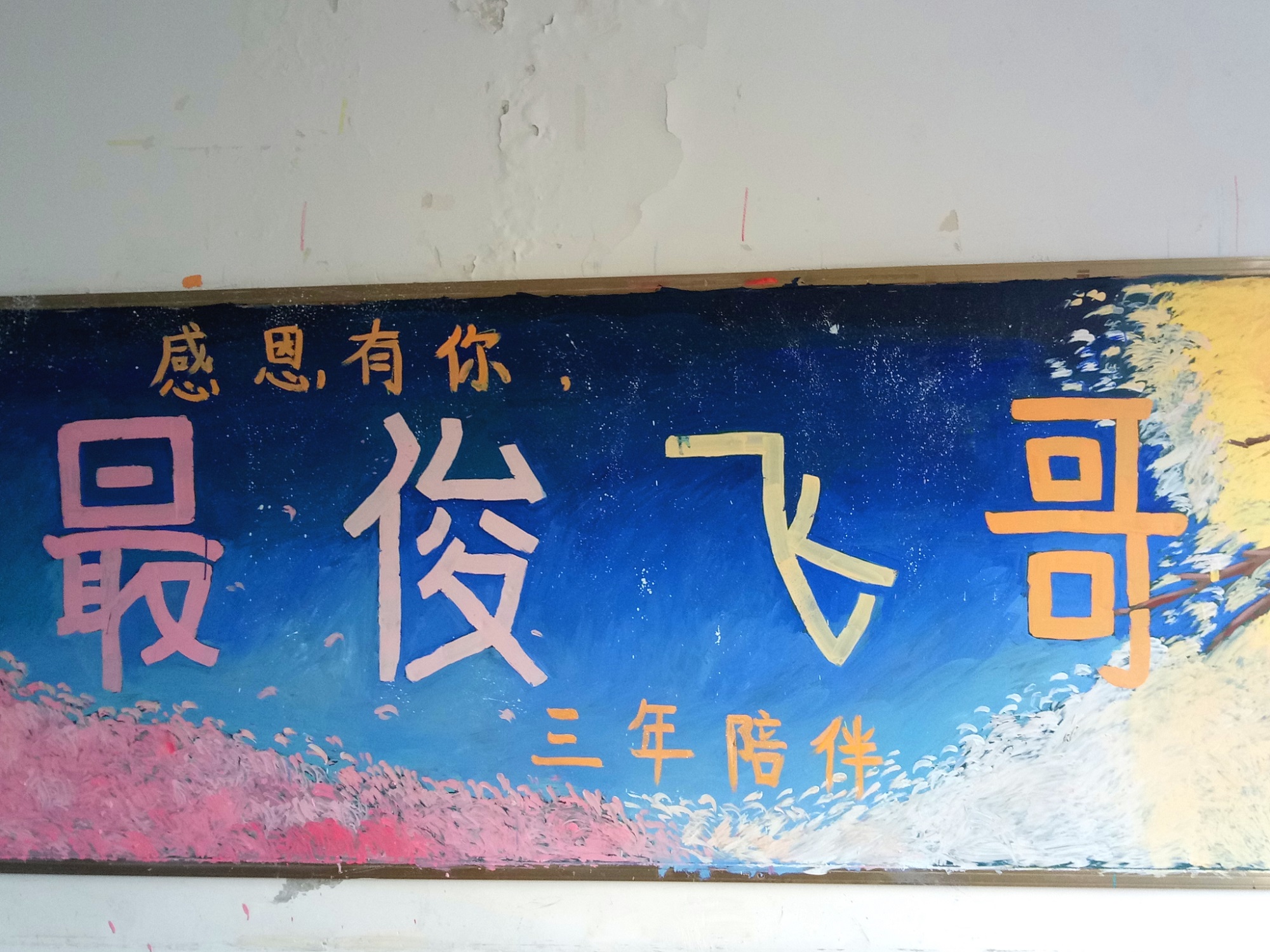 每个教室后面的黑板上,都是学生共同创意和用才情绘成的黑板报,美术班的学生更是充分发挥专业特长,用自己的画笔绘成多姿多彩的祝福。