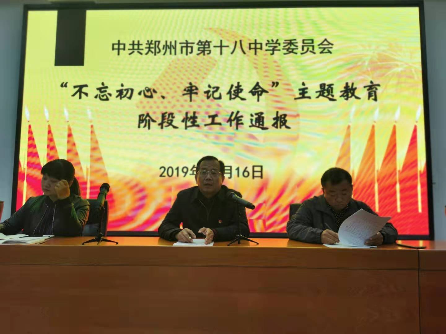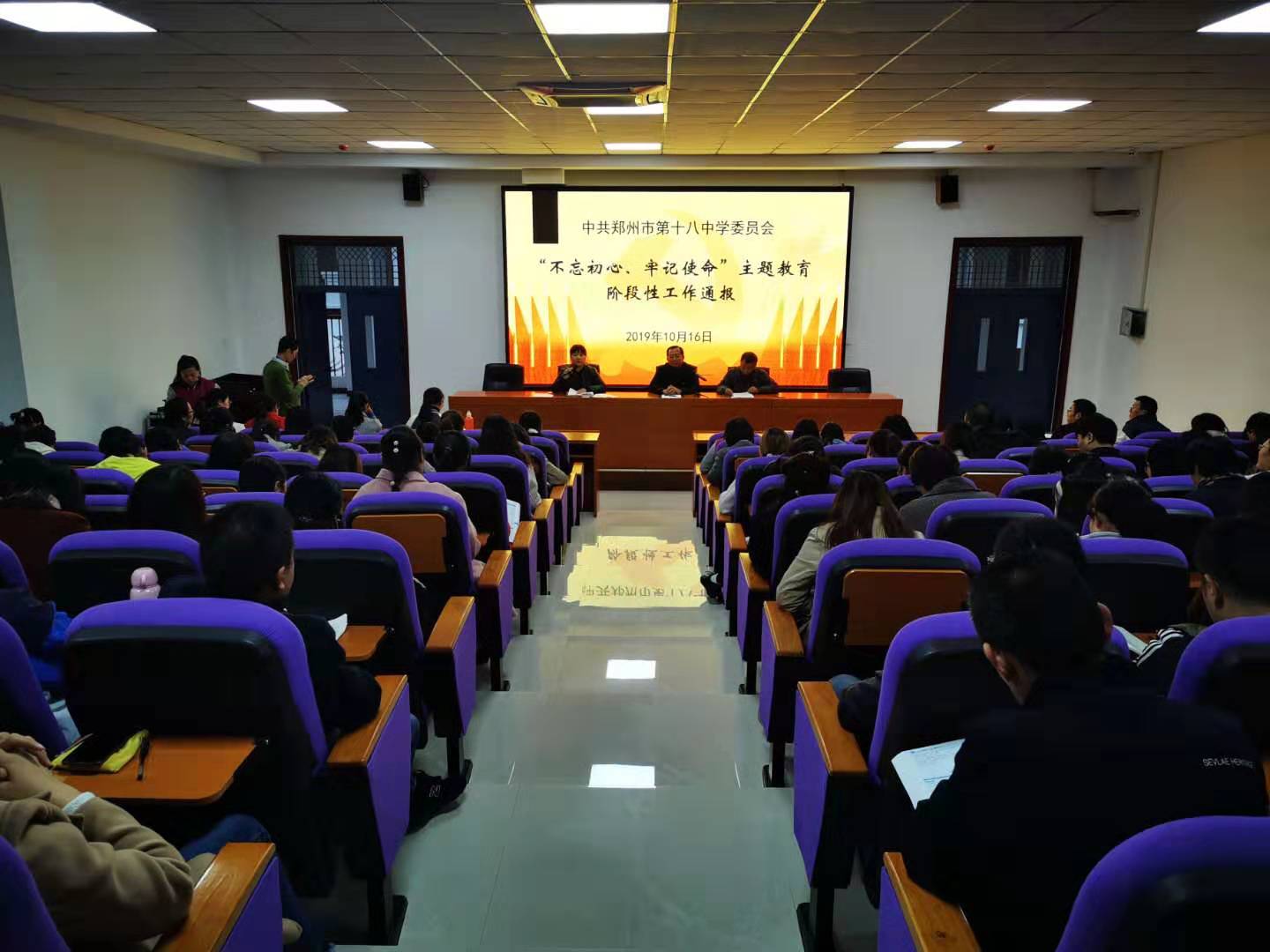 10月16日下午,郑州18中召开“不忘初心、牢记使命”主题教育活动阶段性工作总结会议。学校党委书记魏勇同志就郑州18中开展主题教育情况进行小结。