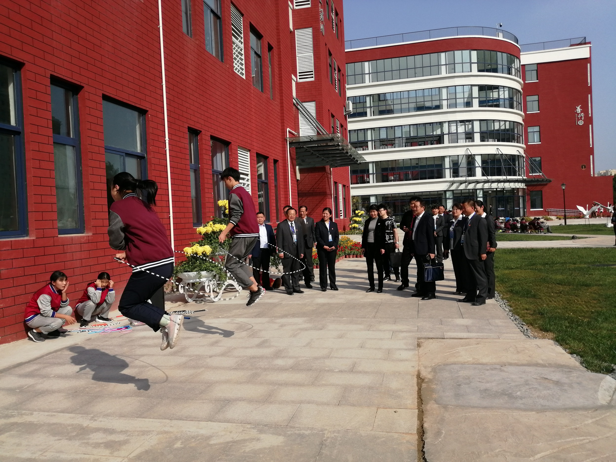 检查组走进校园,就受到学校舞动十八社团学生的欢迎,同学们用动感十足的啦啦操欢迎检查组的到来,花样跳绳队的队员的精彩展示也受到检查组领导的好评。