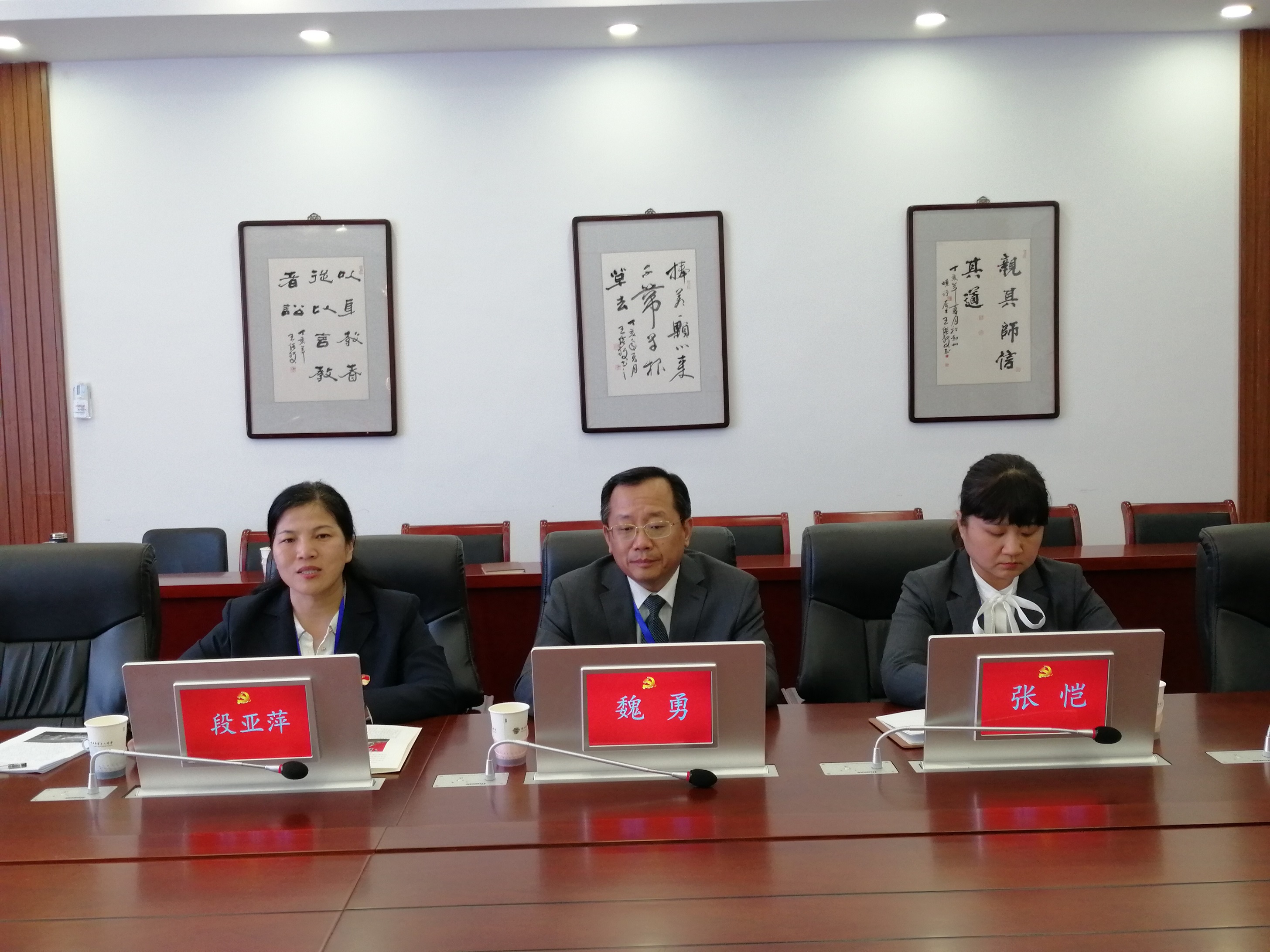 在四楼会议室,检查组首先听取了校长段亚萍的汇报。段亚萍《三届市级多磨砺,新校新貌再登攀》的主题汇报主要从学校基本情况、学校创建省级文明校园的具体做法、今后努力的方向三个方面进行汇报。其中,她重点从学校思想道德建设、领导班子建设、教师队伍建设、校园文化建设、校园环境建设、阵地建设六个方面,详细介绍了学校的具体做法及取得的成效。