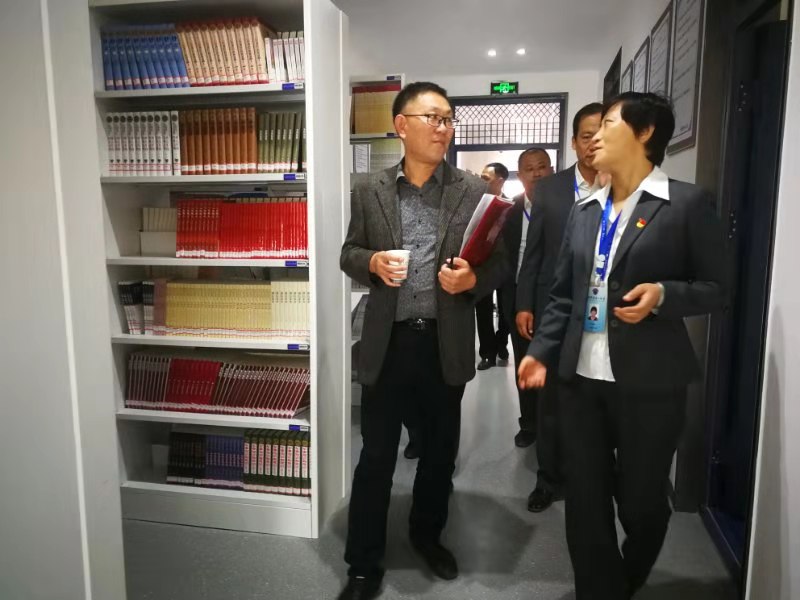 在中心组学习室,郑州市委宣传部农村处处长何宇、郑州市委宣传部农村处副处长袁廷纬对学校2017年、2018年上半年、2018—2019学年的文明创建的档案资料进行了详细审查,对照测评体系和评分标准进行逐项打分。为了方便检查组查看资料,学校的档案资料分别从六个测评指标装订成了6本册子,这种做法也得到了两位领导的肯定。