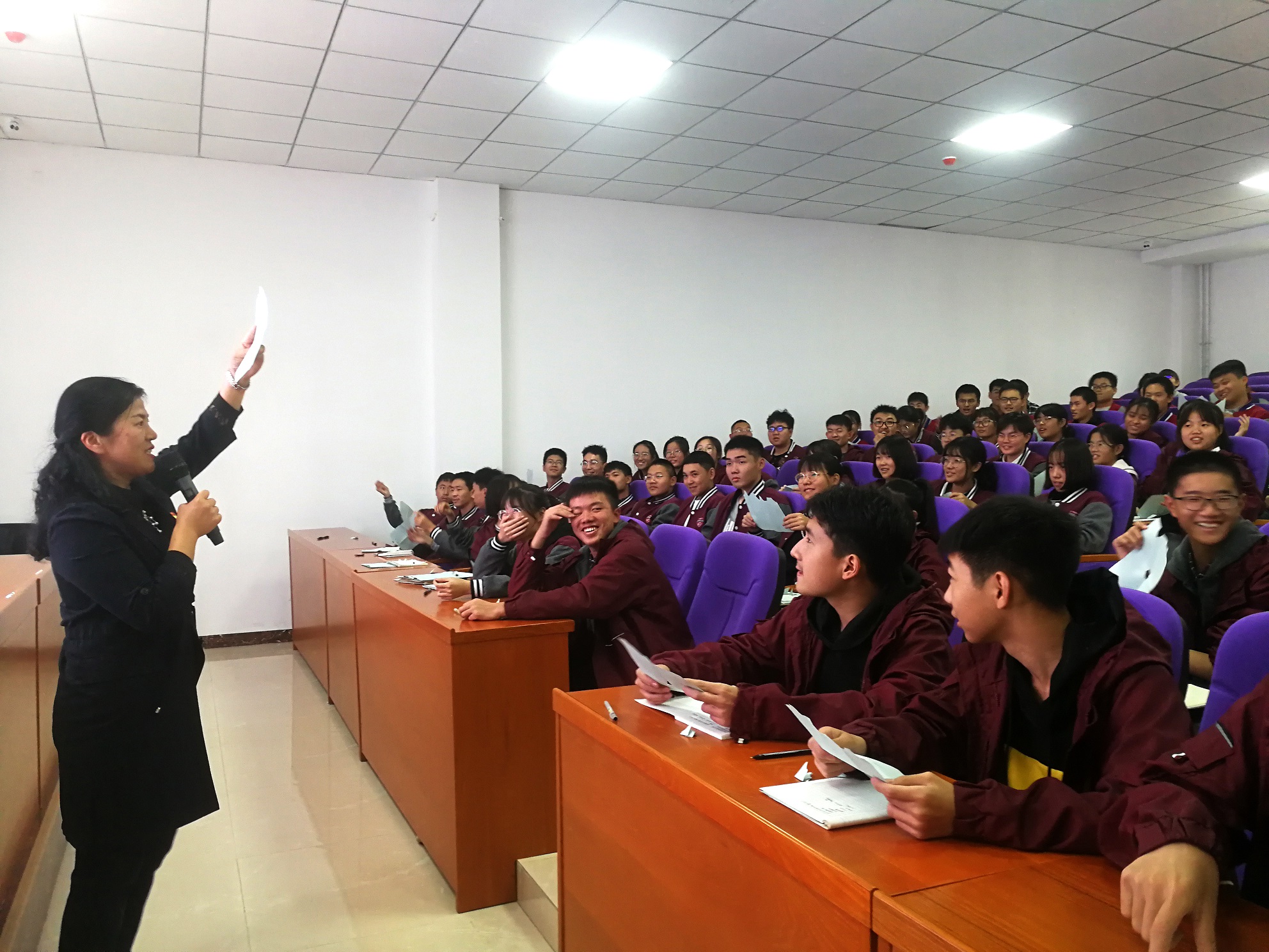 首先,段亚萍论证每个学生都是独特的,同学们要志存高远找准自己的定位,明确自己高中三年的目标,鼓励同学们在学习生活中养成良好的习惯,深刻认识“拖延症”的成因。段亚萍结合实际案例讲述了成长型思维、固定型思维、辩证性思维的区别和联系。鼓励同学们多角度看问题,多参加学校及班级组织的辩论赛。接着,她引用“鱼和奶牛”的故事劝说同学们多读书,扩大认知,开阔思维。在这一环节,她还带领同学们做“撕纸游戏”让同学们深刻理解好的学习习惯。