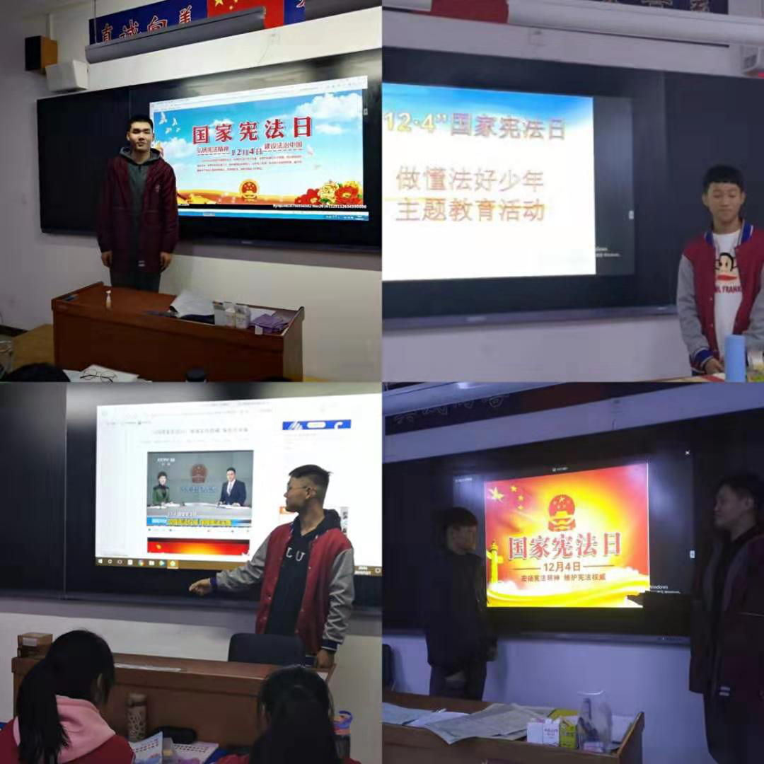 12月1日,各班开展“弘扬宪法精神,推进国家治理体系和治理能力现代化”主题班会,对学生开展《宪法》《预防未成年人犯罪法》《未成年人保护法》的宣传教育,并组织学生进行分享,通过主题班会培养学生学法、懂法、守法。