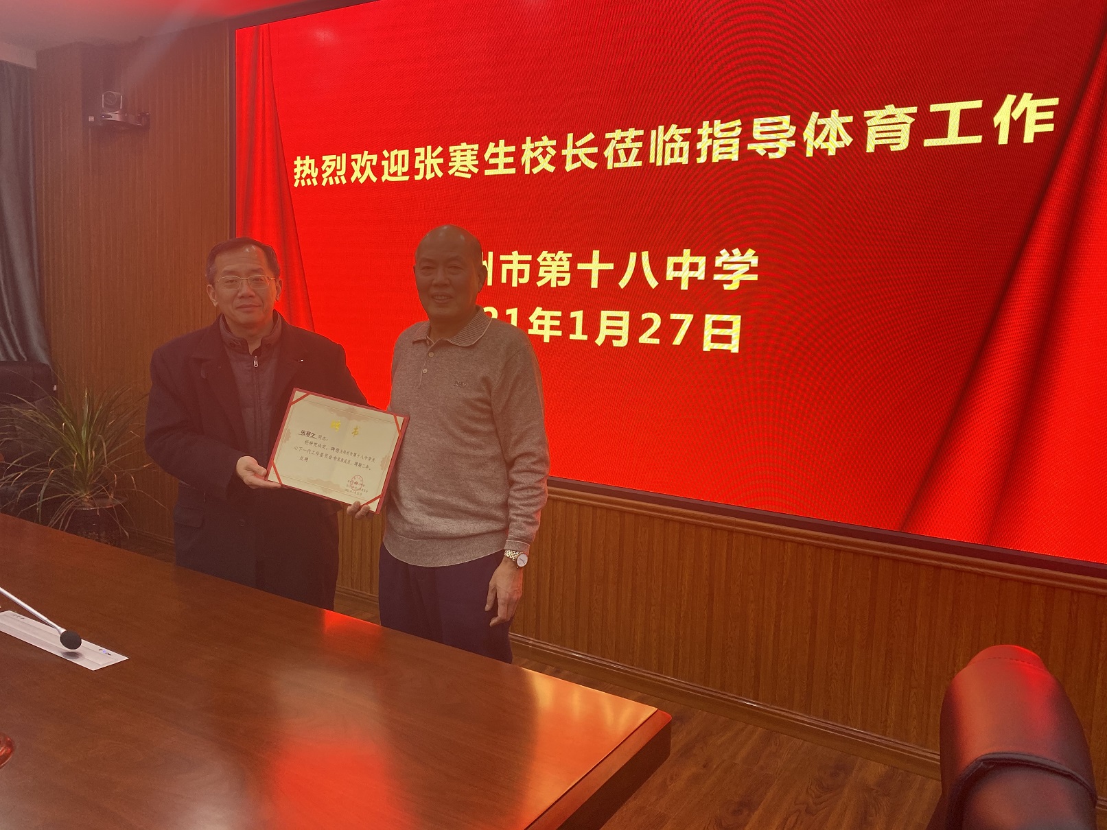 1月27日,郑州18中邀请郑州62中退休干部张寒生指导学校体育工作。据悉,张寒生拥有丰富的体育教学和管理经验,特别是校园足球教学方面。张寒生参加了体育组的教研活动,他在体育组教研组长赵彩英的陪同下,参观了学校田径场、篮球场、棒垒球击球笼、游泳馆等体育场馆设施。随后,在四楼会议室召开了座谈会,大家就学校的体育教学工作展开了充分交流。学校党委书记魏勇、副校长倪海军、政教处副主任秦元柱和全体体育教师参加了座谈会。