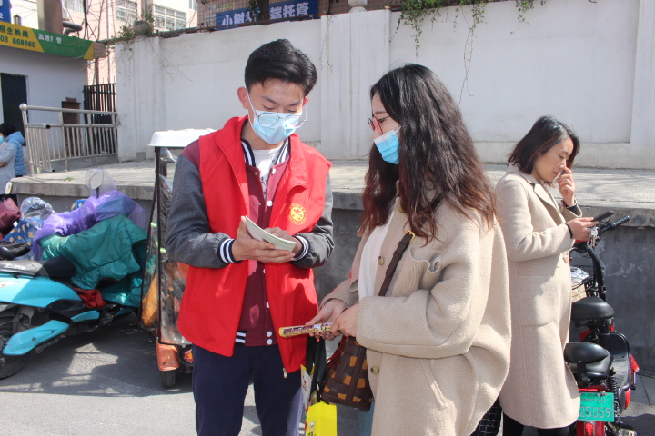 在学生放学前,16名师生志愿者和社区志愿者向家长发放《二七区新冠肺炎疫情防控手册》以及《河南省文明行为促进条例》,同时,向市民耐心解读手册和条例的具体内容,赢得了市民的极大认可。