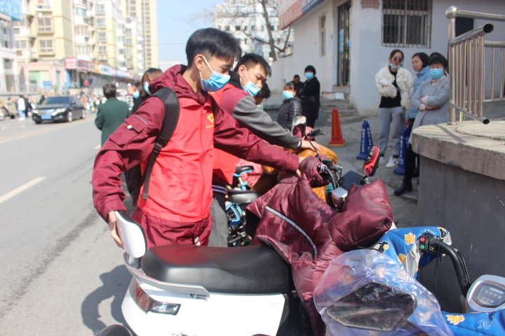 艺术小学放学高峰,周边电动车和共享单车乱停乱放现象比较严重,容易造成拥堵。志愿者们趁着学生没有放学,把参差不齐的电动车和共享单车摆放整齐,保障了道路的畅通,利于家长排队接孩子。
