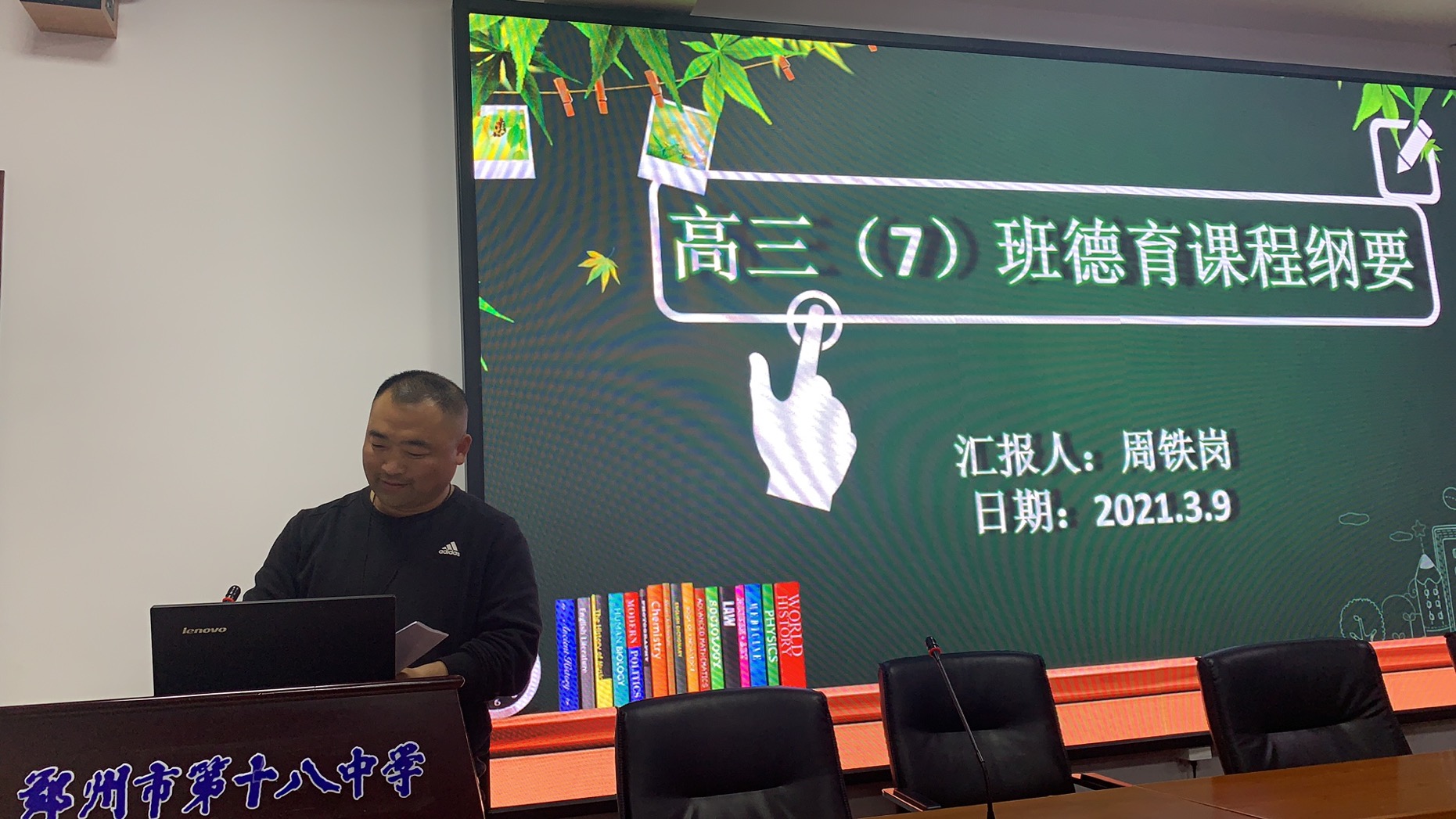 为了认真贯彻落实立德树人根本任务,坚持德智体美劳“五育并举”,切实将德育工作落细、落实,促使学生坚定理想信念、涵养家国情怀、砥砺奋斗精神、坚持人与自然和谐发展理念,树立正确的世界观、人生观、价值观。3月9日下午,郑州18中就新学期的德育课程纲要分年级进行了分享展示。学校中层以上干部共同参与了本次分享会。