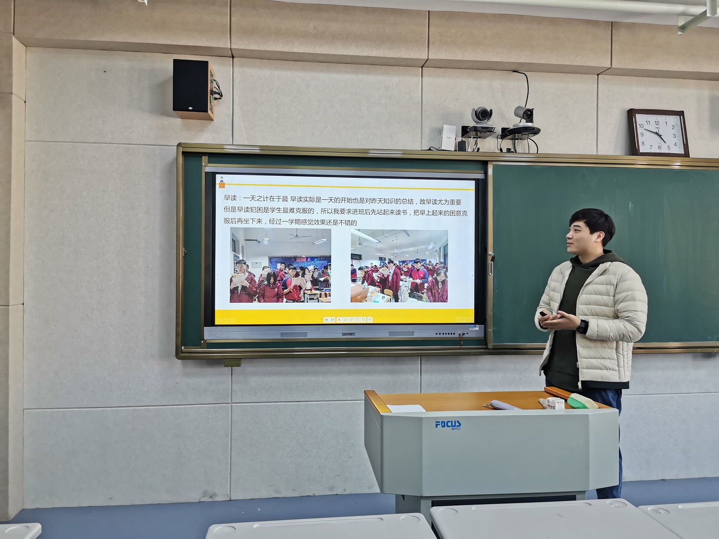 高二(1)班班主任葛昌营带结合带美院班的经历,在分享中提到本学期的德育目标是巩固德育成果,根据学生的生理心理特点,开展青春期心理教育与引导,平稳地向青春期过渡,让学生实现生理和心理的健康成长,努力缩小差距,减少两极分化,巩固对学生进行“五爱”教育的成果,引导学生树立正确的人生观、世界观、价值观教育。