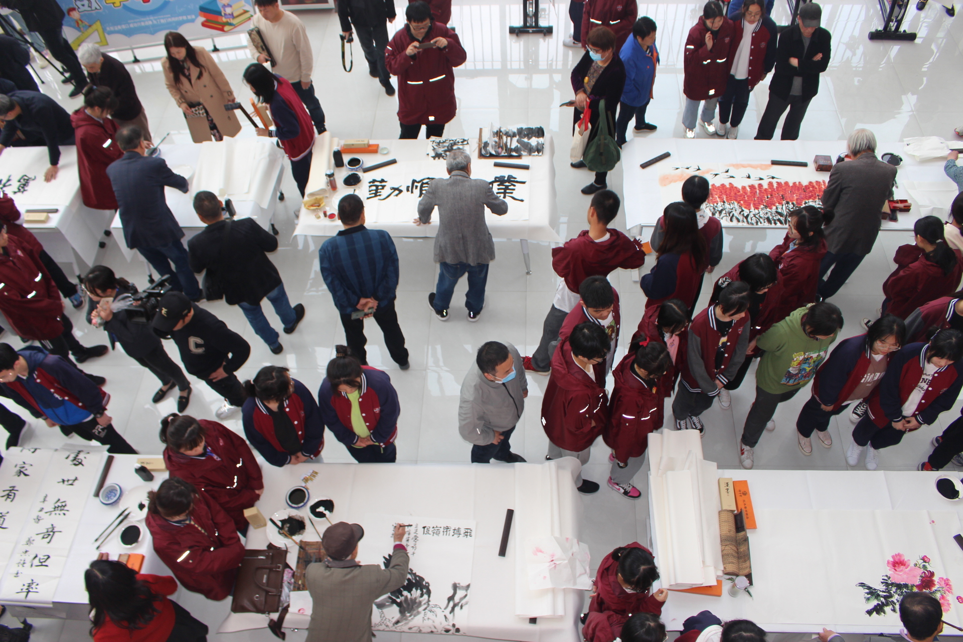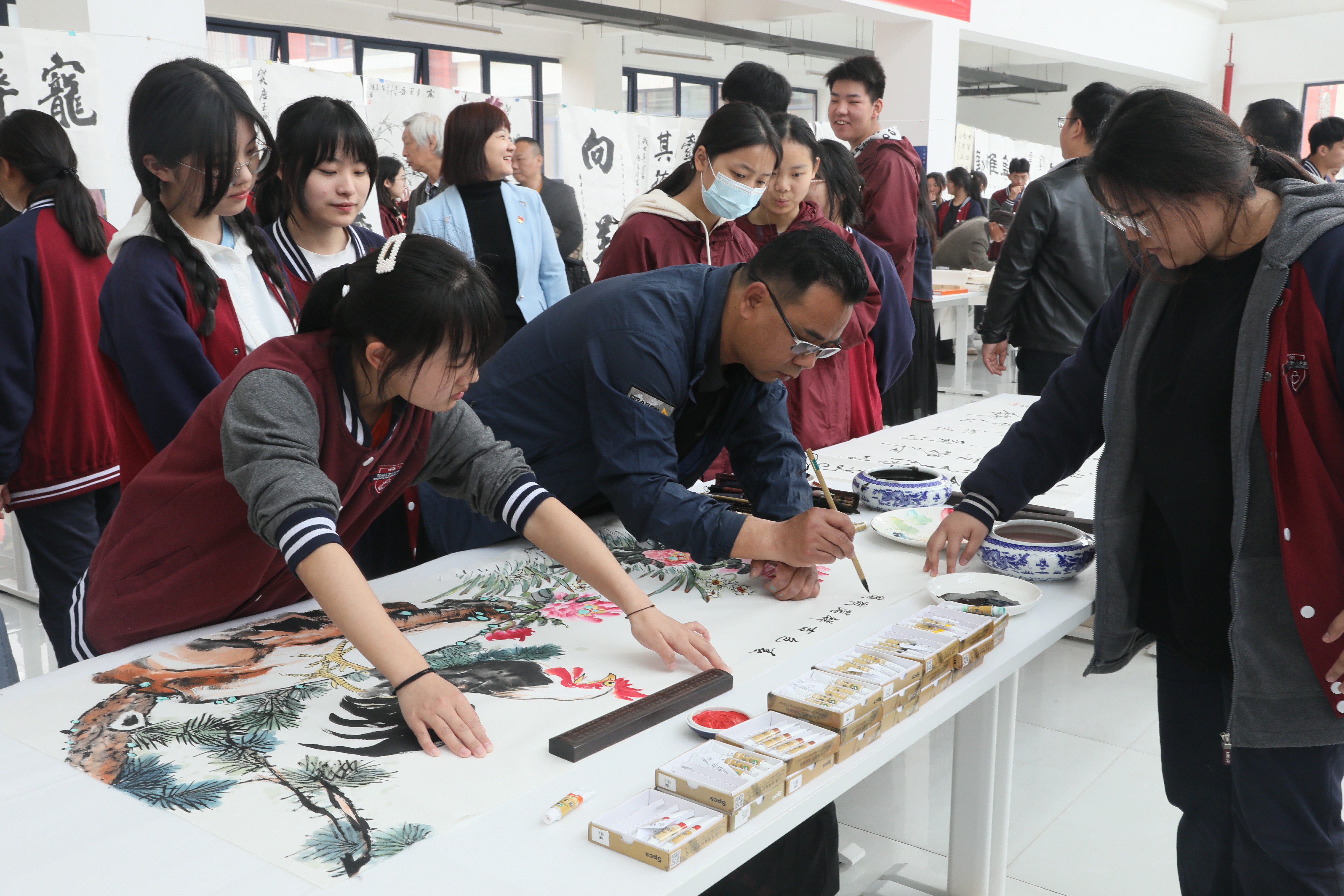 揭幕仪式后,大家移步到教学楼三楼大厅参加“书画现场笔会”。他们或挥毫写字,或倾情绘画,大家纷纷用书法和绘画的形式,既是对中华传统文化的弘扬,也表达了对艺术家唐玉润的纪念。