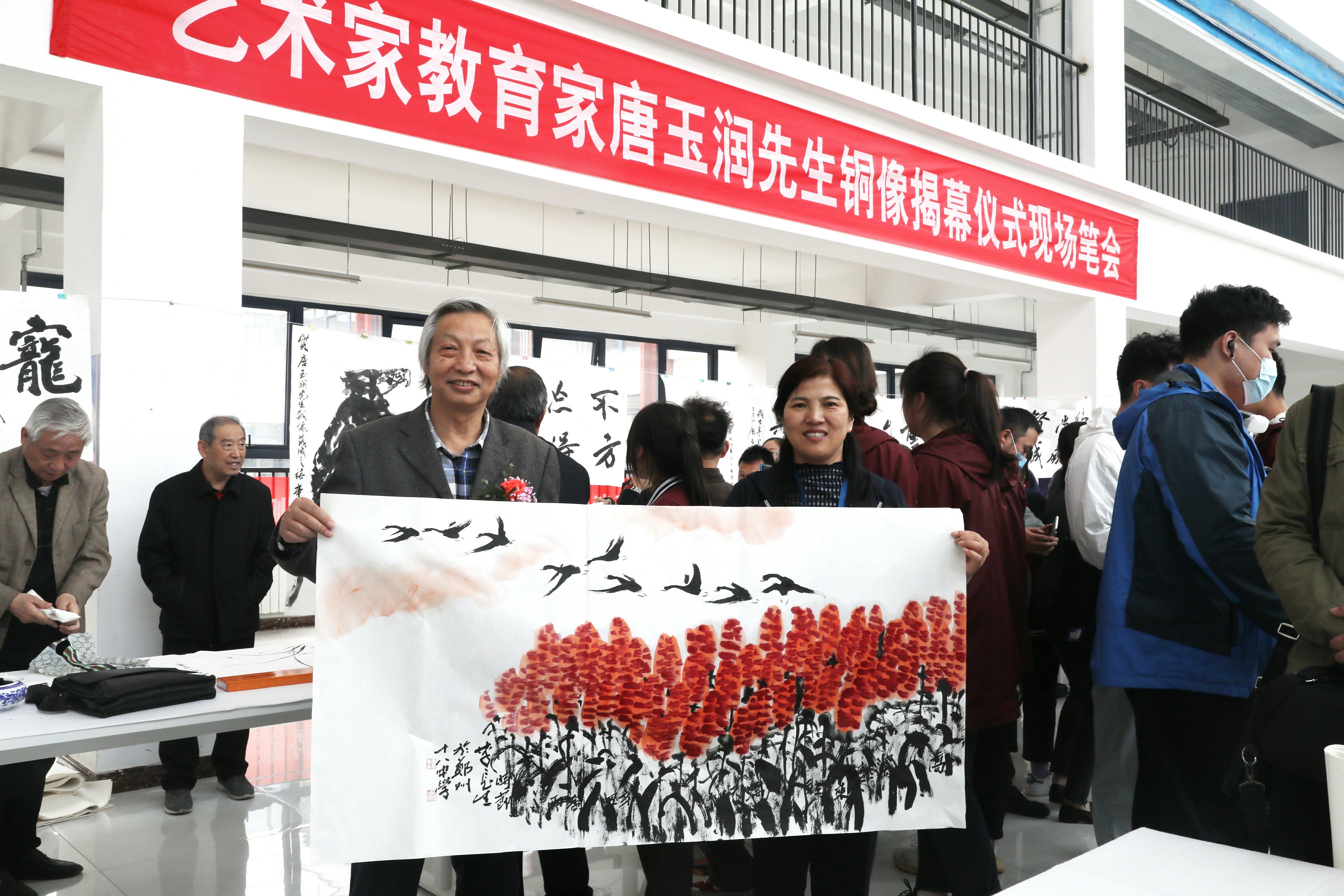 纪念艺术家教育家唐玉润 我校举行铜像揭幕仪式和书画笔会