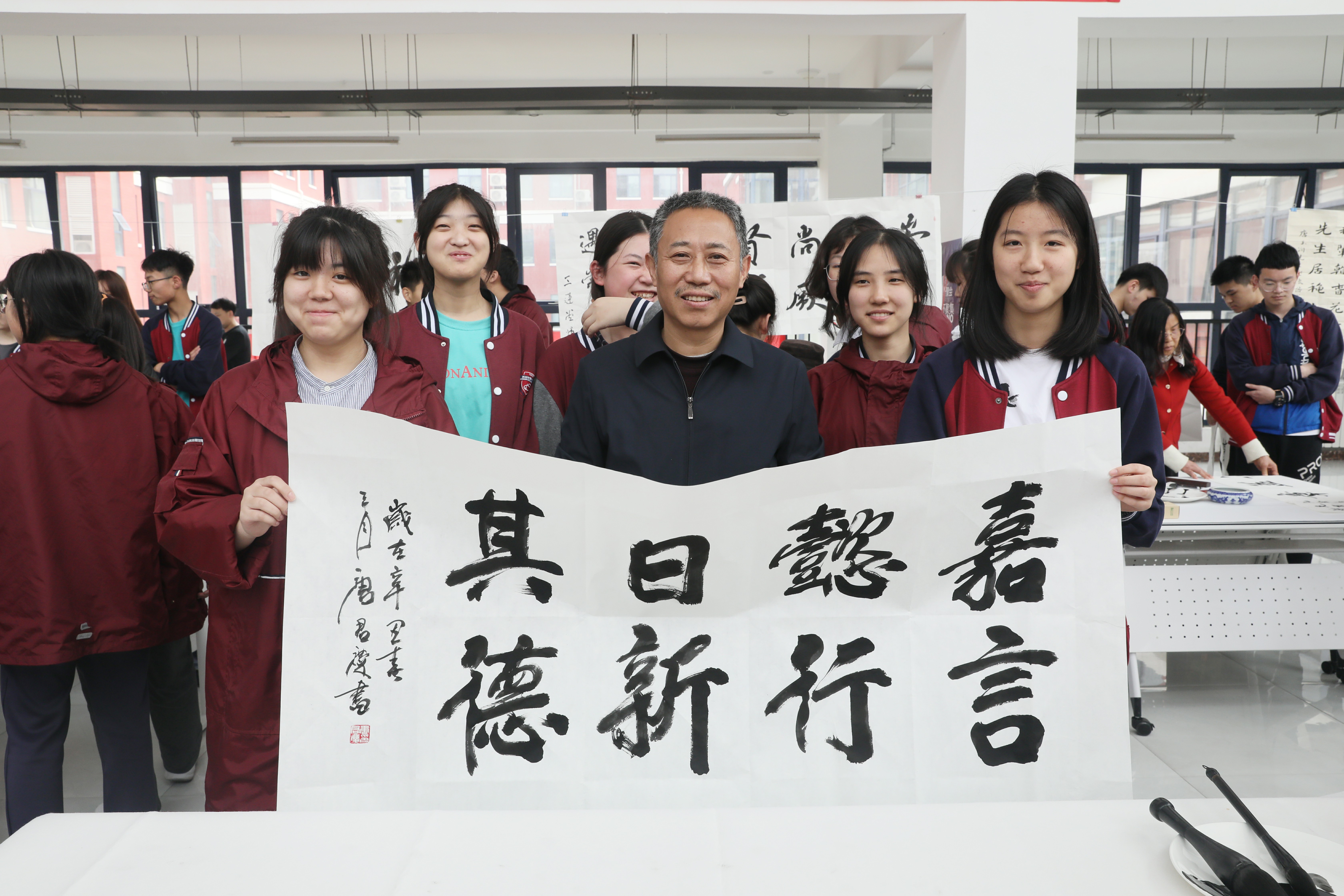 郑州市教育局体卫艺处处长马胜宇在讲话中说,唐玉润先生是德艺双馨的艺术家,名动中原,曾为机关、学校、企业、商场、单位题写的牌匾不计其数,深受社会各界好评。他一生勤勉爱国,心系人民,关心社会,热心公益,只要国内国际出现大的自然灾害,他都率先参加“义创义卖”活动,捐钱捐作品,奉献爱心。郑州18中作为郑州市美育示范校,认真贯彻落实教育局“五育并举”的理念,全面实施素质教育,促进青少年健康快乐成长。在教育教学、体育、艺术等方面,大胆创新,锐意进取,成绩突出,已经成为郑州市美术教育的后起之秀,也是郑州教育的一张靓丽名片。他希望郑州18中通过这些活动,切实提高学生的综合素养、提升教师的教学水平,不断提高学校的教育教学和管理水平,促使学校再上新台阶。