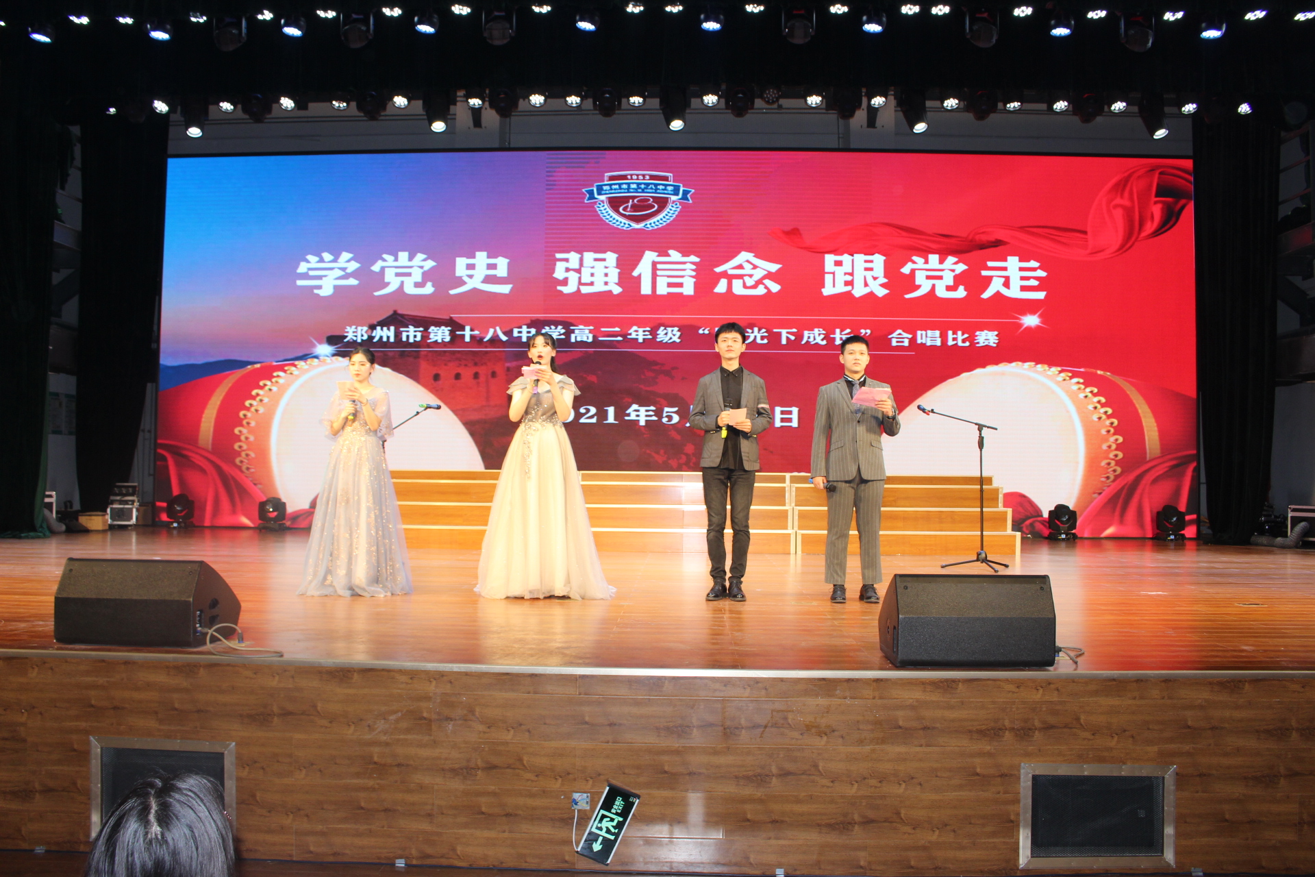 百年征程波澜壮阔,百年初心历久弥坚。为迎接建党100周年,5月19日下午,郑州18中高二年级举行“学党史,强信念,跟党走——阳光下成长”班级合唱比赛。该校校长段亚萍,党委书记魏勇,副校长倪海军等出席比赛并担任此次活动评委,全体高二师生参加活动。