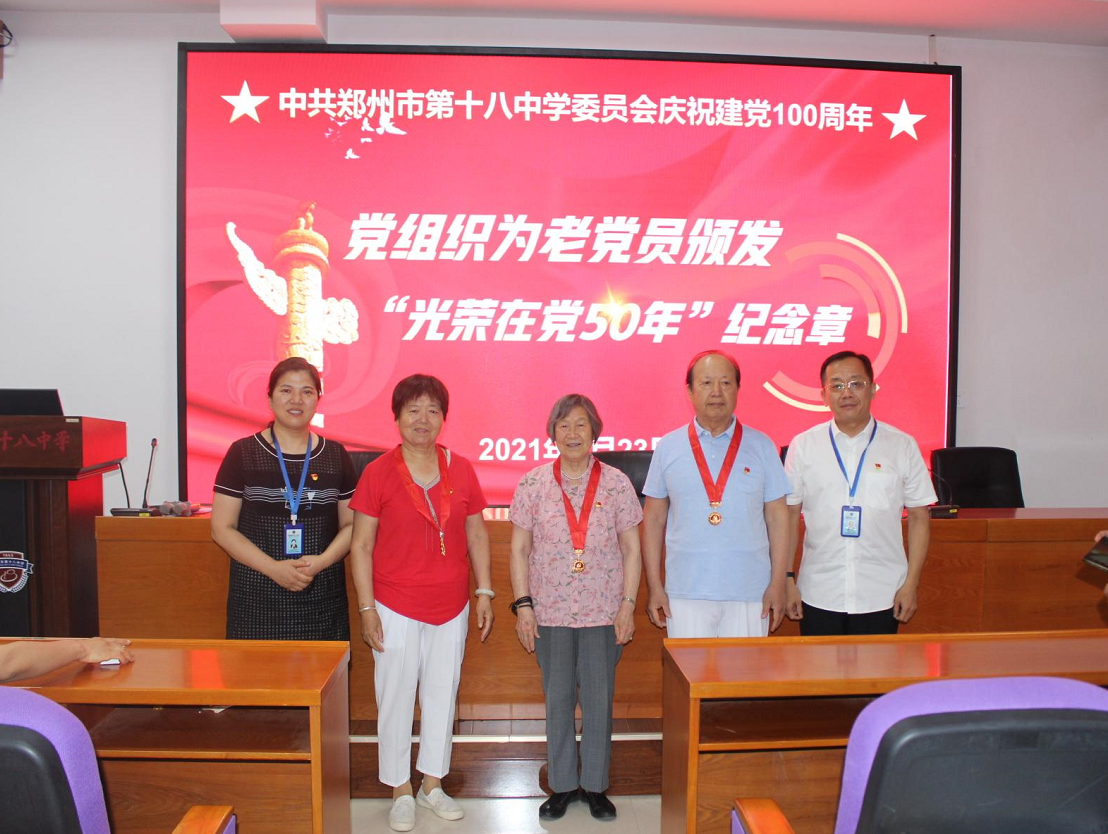会上,校长段亚萍、党委书记魏勇代表学校党委为党龄超过50周年的退休老党员颁发“光荣在党50年”纪念章。当魏勇代表党组织把金灿灿的荣誉勋章颁发给老党员时,每位老同志都激动不已,接过奖章激动地说:没想到我们还能得到这么高的荣誉,说明党和组织没忘记我们,这也是党对我们老党员的尊重与鞭策,没有共产党就没有新中国,我们要继续发扬党的优良传统,再接再厉、发挥余热,离岗在家忠于党,不忘初心念党恩。