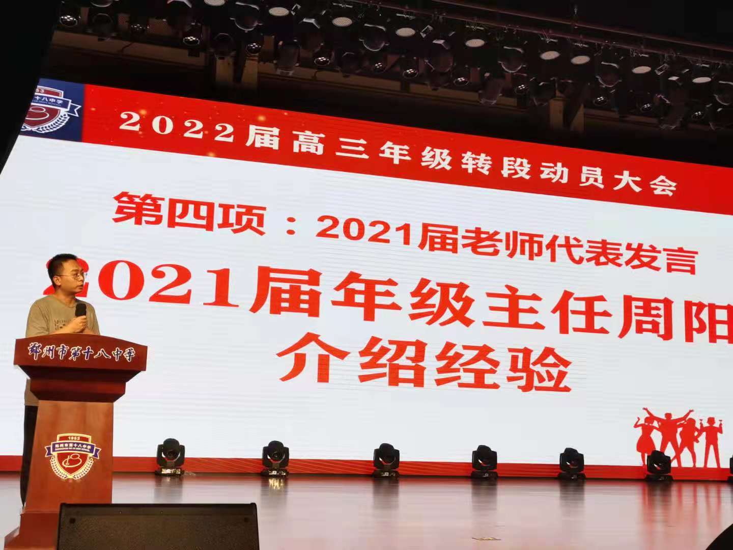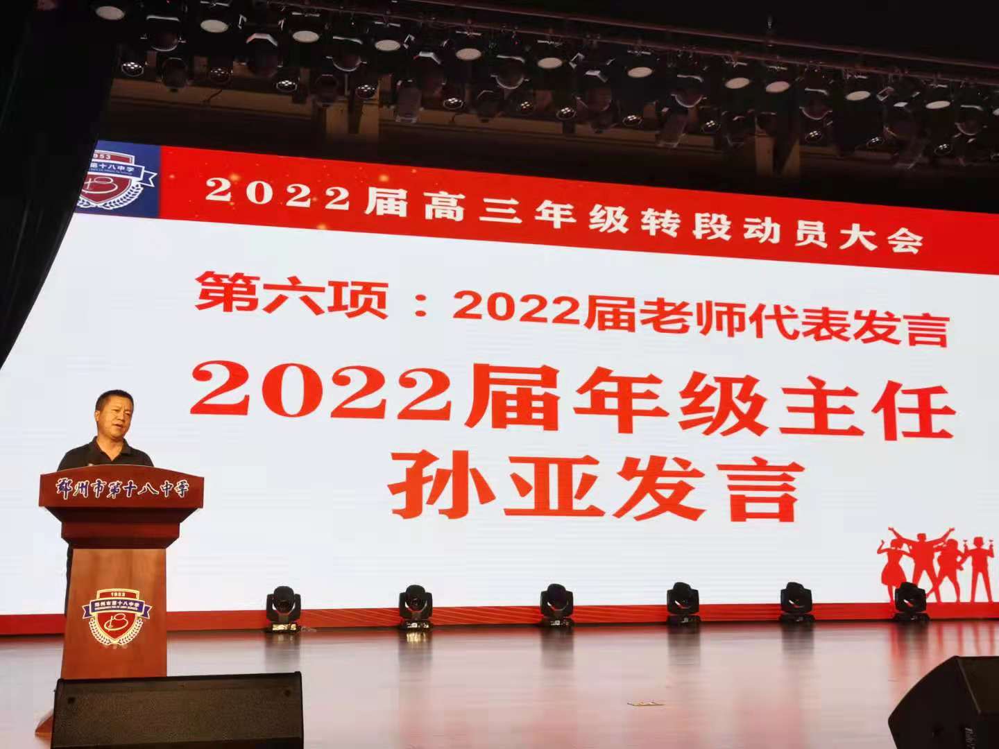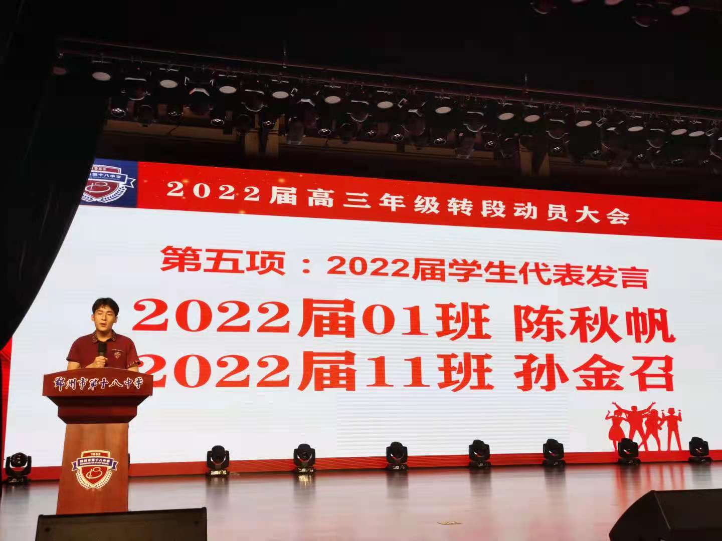 2021年的高考已经落下帷幕,2022年的高考已经吹响号角。为鼓舞士气,明确目标,找准方法,坚定信念,7月4日下午,郑州市第十八中学2022届高三年级在学校报告厅举行以“赓续荣光,再攀高峰”为主题的动员大会。