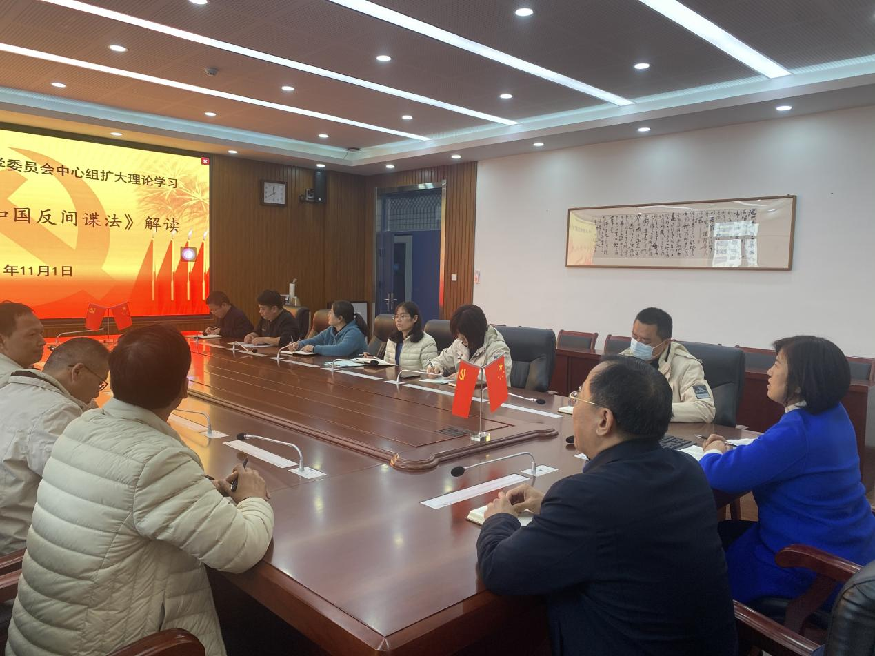 学校中心组扩大理论学习小组召开专题会议,在校长段亚萍和党委书记魏勇的带领下共同学习并解读《反间谍法》。会上,段亚萍要求各处室、年级负责人要把会议精神传达到相应处室老师。学校计划在周四全体教工会上,再次带领全校教师进行学习。